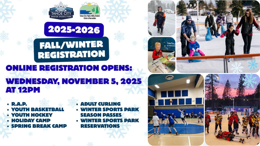 TCPUD reserves the right to cancel any activity. If TCPUD cancels an activity, a full refund will be issued. If a participant cancels at least 5 working days before the activity start date, 80 percent will be refunded. No refunds, full or partial, will be issued if a participant cancels within 4 working days before the activity start date, or fails to attend an activity of class. Please contact the Recreation Department for any cancellation requests. NOTE: All schedules and rates are subject to change.